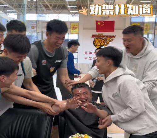 凝聚力拉满!广东为林医生庆生!杜锋讲话致敬,球员砸蛋糕未果!