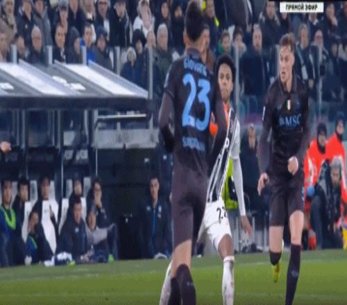 第38分钟,那不勒斯两人禁区内倒地,裁判没有表示