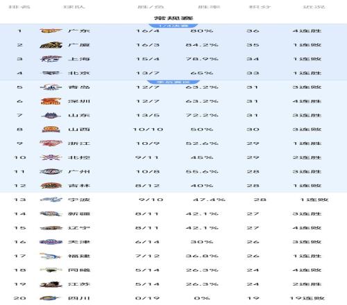 胡明轩末节11分,广东4连胜登顶,北京重返前四,CBA最新排名如下