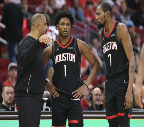 首先,火箭明明是控卫存在天然短板,为什么在交易截止日前不补强这一位置?甚至太阳愿意将科尔安东尼送给火箭,火箭也拒绝了!这一问题不难回答,五个原因:第一,薪资层面,球迷都知道,火箭老板费尔蒂塔,是不愿意多掏奢侈税的;第二,从乌度卡的“战术”布置来看,申京可以组织,没必要多此一举;第三,依托于杜兰特强大的进攻终结,也就是托下限的能力;第四,等着范乔丹在季后赛回归;第五,火箭管理层也希望给谢泼德和阿门足够的上场空间,毕竟这两人在1号位承担了大部分时间。