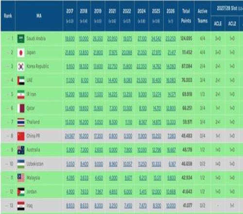 必须放开外援!中超亚足联积分东亚第9:国足或被泰国超越
