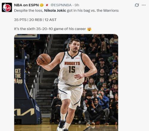 6.约基奇生涯总得分超越纳什升至历史第98位;