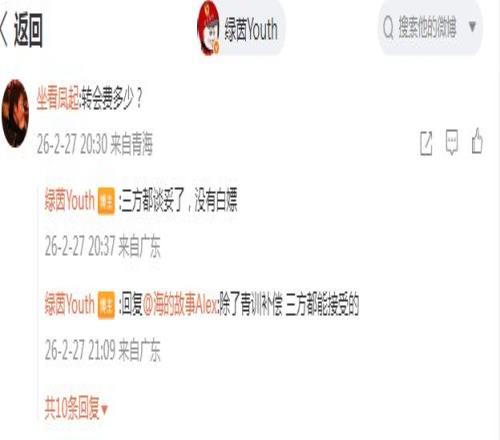 这也就是为何一听到是0转会费,很多球迷都批评海港的原因。那么,为了挖到杨黔东,海港到底有没有给钱?博主绿茵Youth表示这次交易三方都谈妥了,海港这次没有白嫖(下图)。