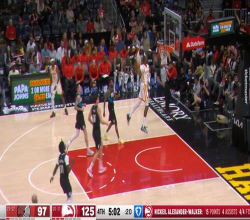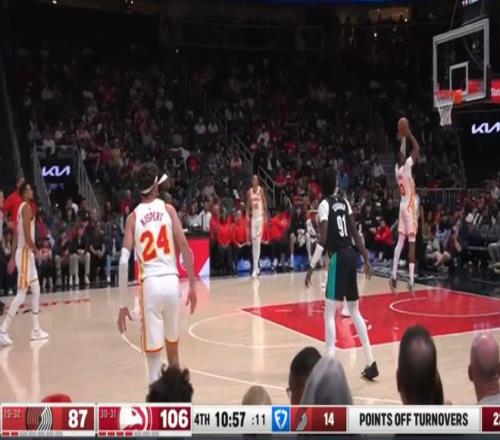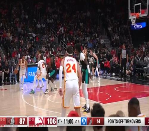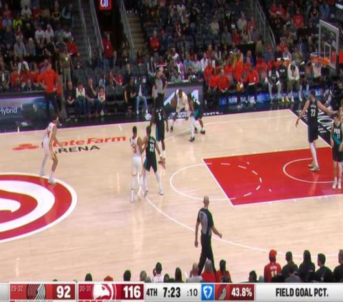 常规赛,老鹰主场135-101战胜开拓者。