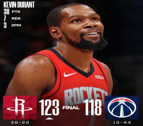 火箭拒绝奇才逆转后拿到38胜22负跟西部第四的森林狼拉开0.5个胜场;