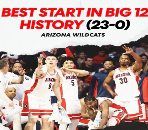 亚利桑那大学本赛季赛季开局创造 BIG 12 联盟历史最佳纪录,一度打出23 胜 0 负的不败战绩(其中联盟内 10 胜 0 负),打破了 1996-97 赛季堪萨斯大学保持的联盟历史最佳开局纪录。