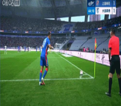 第44分钟,高天意开出右侧角球,新外援盖伊门将抢点头球破门,申花2-1反超英博了!