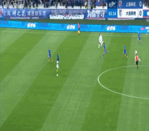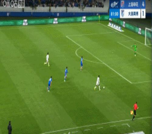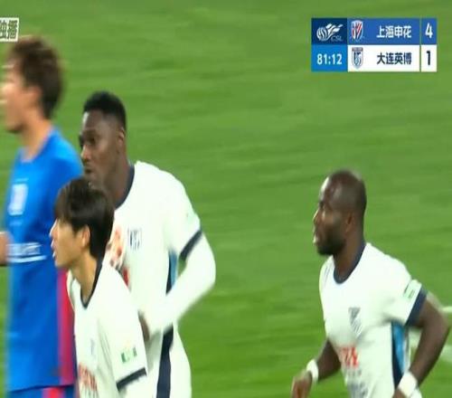 第45+4分钟,申花不依不饶,禁区内马马杜防地高空球冒顶,拉唐一脚推射再下一城,申花3-1领先大连英博!