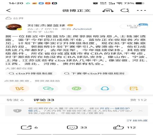 此次升降级爆料的精准兑现,于我而言早已习以为常。过去十年,从联赛转会动态、球队人事调整到篮协改革布局,我的一次次独家爆料,不仅让更多人认识了我,更在CBA圈结下了一众志同道合的朋友,也持续拓展着更深度、更核心的消息渠道。甚至不少CBA球队的老总,都会主动添加我为好友——这份认可,源于我始终坚守的原则:极致保护消息源,客观传递信息,更能在行业规则内为各方搭建有效的沟通桥梁,让信息传递更有价值。