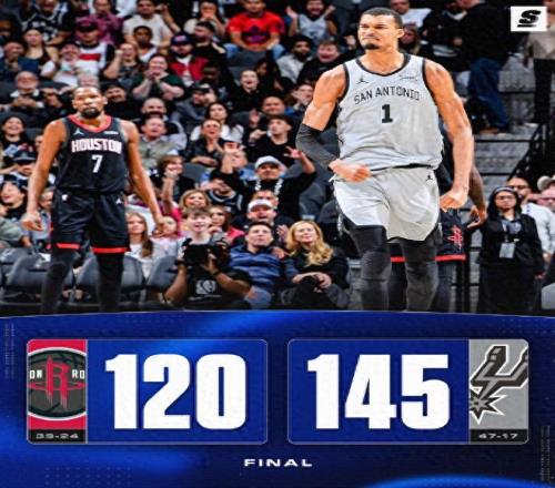 马刺4人20+三杀火箭,马刺145120大胜火箭,文班亚马高效轰29分
