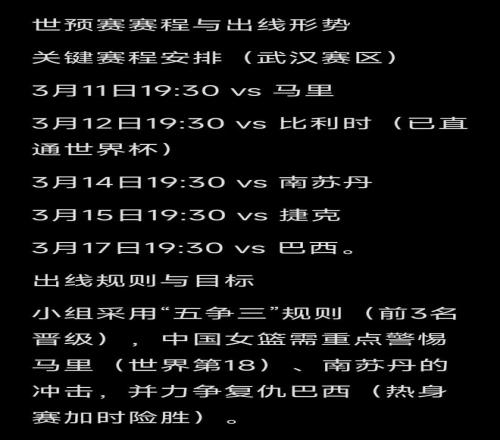 刘禹彤落选,李梦缺席!世界杯预选赛3月11日:中国女篮VS马里