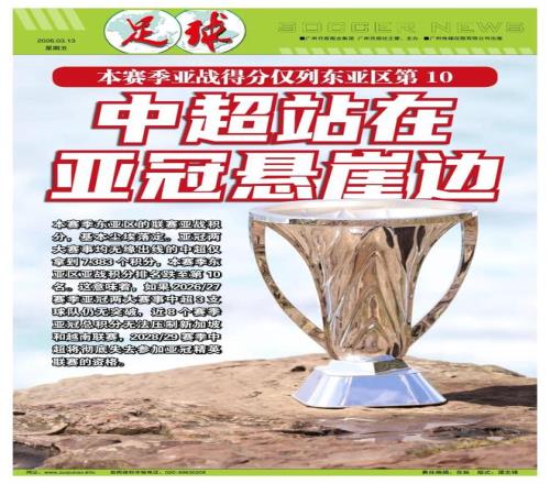 亚冠精英联赛东亚区1/4决赛,武里南联淘汰墨尔本城,澳超近8个赛季的亚战总积分停在49.178分。中超(49.483分)因此侥幸以0.305分微弱优势,在2027/28赛季保住了2个亚冠精英联赛名额和1个亚冠2联赛名额。但这仅是保住1个赛季的亚冠名额:亚足联规定亚冠名额根据前8个赛季(2020赛季除外)亚战总积分排名,每个赛季均重新分配。而亚战总积分越来越低的中超,已站在悬崖边上。
