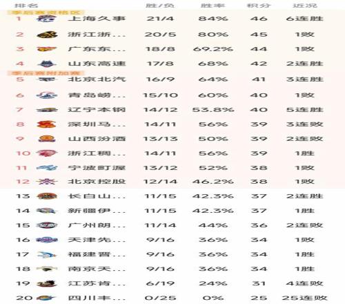 CBA最新积分榜