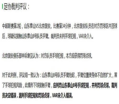 也有国安球迷“翻旧“”:以前泰山吃亏的时候,你们不是说“裁判也是人”吗?怎么这回轮到你们获利,反而一个个理直气壮?球迷“各为其主”,为自己支持的球队吵得不可开交,也非常容易理解,但是焦点早就不在那球该不该判上了。有清醒的球迷更纳闷的是:VAR为什么对手球没反应呢?