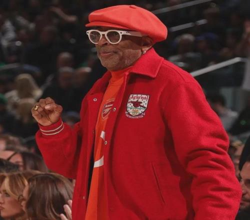 美国著名导演斯派克李在观看纽约尼克斯的比赛时穿上了阿森纳的服饰。