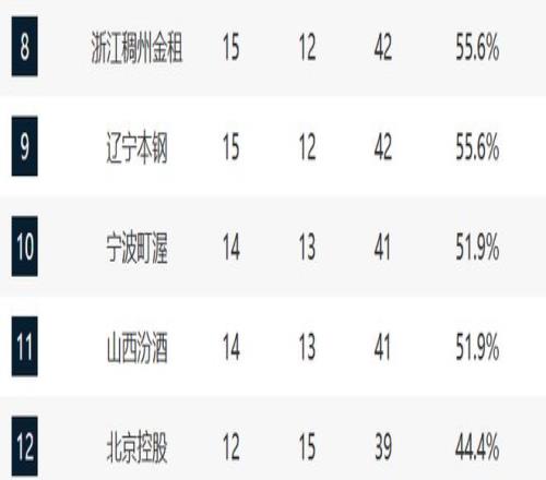 8-11分别是浙江、辽宁、宁波和山西。浙江这轮输给同曦,算是被爆冷了,也没有办法内线太劣势了。辽宁已经六连胜了,排名持续提升,乌戈完全调动了球队的攻守体系。宁波和山西这轮都赢球了,但目前山西的战绩起伏还是太大了。