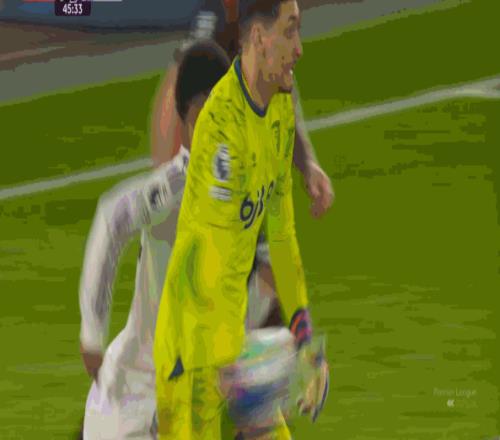 根据赛后的报告,当时VAR系统也已经启动,但认为接触不足以倒地,裁判和VAR系统一起让伯恩茅斯先打出反击,而在第一时刻,曼联的防守做得不错,堵住了伯恩茅斯一路向前的势头,逼迫他们转到了右边: