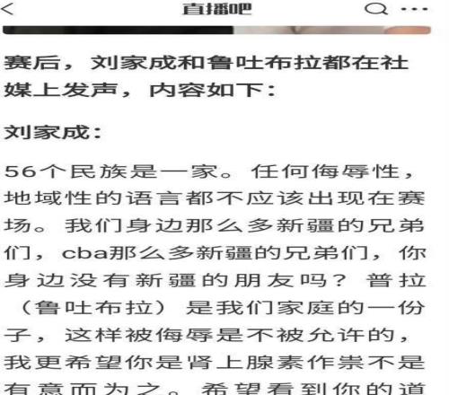 今年2月上旬,时任中国男篮队长赵睿在个人微博评论区回复一名新疆籍球迷时,轻率使用“回去打馕吧”等带有地域刻板印象的调侃式表达,严重伤害少数民族群体情感,引发新疆维吾尔自治区人民政府新闻办公室官方通报谴责,强调“中华民族共同体意识不容亵渎,各民族一律平等是宪法原则”。