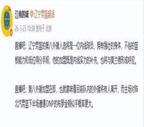 在输给北京首钢后,辽宁男篮暴露出内线进攻乏力的致命短板——尽管莫兰德成功限制对手中锋麦基,但自身在低位得分与篮板保护上仍显疲软。管理层迅速响应,据知名媒体人“江南的城”透露,辽宁即将签下第8名外援,一名具备强壮体格、出色篮板和低位背打能力的内线球员,旨在与莫兰德形成攻防互补。