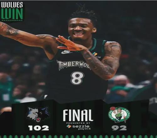 今日常规赛,森林狼以102-92掀翻凯尔特人,成功避免连败之余,顺手还打破了一段21年的魔咒。