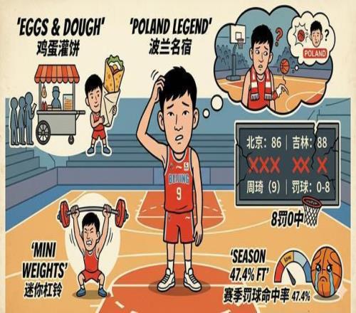 CBA常规赛又出了个大乐子。北京首钢对阵吉林,首钢内线大闸周琦出战28分钟,全场运动战10投8中,如同天上降魔主。结果低头一看罚球栏——好家伙,8罚0中!