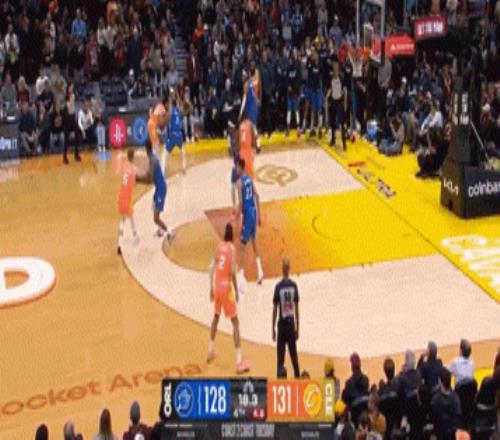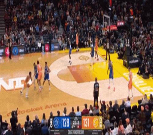 中场结束前,哈登还玩了手压哨3+1!