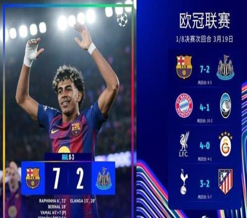 欧冠72惨案!巴萨狂胜纽卡!8强对阵宣告出炉,英超6强还剩2队