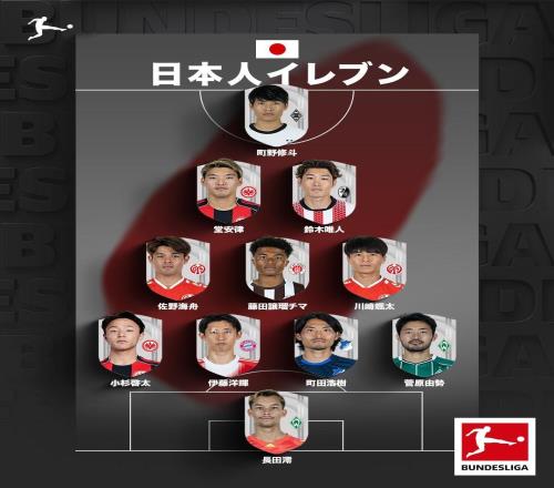 够一套首发,德甲官方日语账号分享德甲日本球员阵容