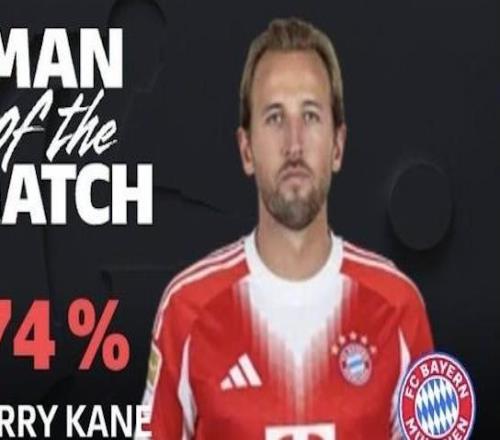 梅开二度,凯恩当选拜仁客战不莱梅全场最佳球员