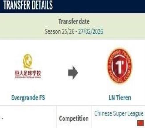 恒大足校官方:杨黔东转会海港,未来双方将开展更密切的合作