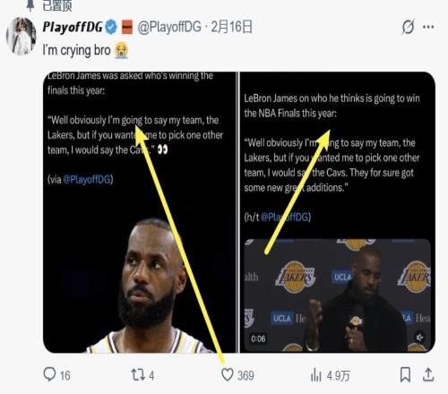 加兰球迷戏耍詹黑!AI詹姆斯声称支持骑士夺冠、被媒体转发!