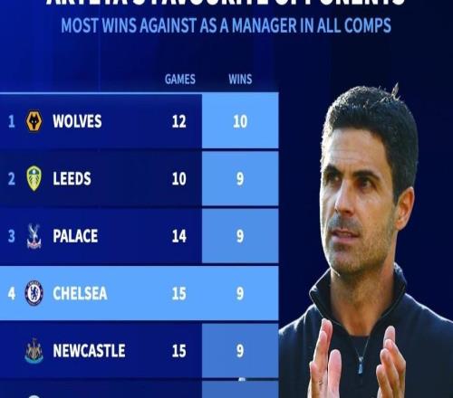塔帅生涯赢球场次最多的10个对手:15战切尔西9胜排名第4