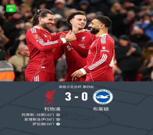 足总杯利物浦30布莱顿晋级,萨拉赫传射,索博、琼斯建功