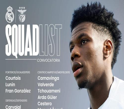 皇马公布对阵本菲卡大名单:姆巴佩、赫伊森缺席