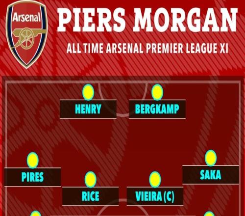 摩根评枪手历史最佳阵容,赖斯、萨卡等现役4人入选引发热议