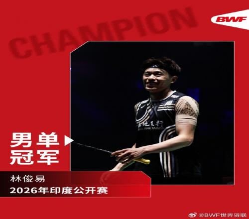 体育播报1月18日宣 2026年印度羽毛球公开赛决赛,中国台北选手林俊易2-0击败乔纳坦,首夺750赛冠军。