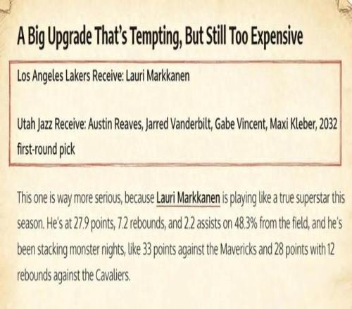 美媒《Fadeaway World》便提出了一套5换1的交易方案,引发巨大争议。具体方案为——