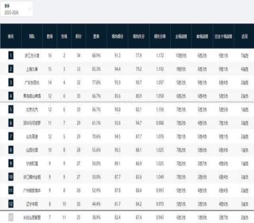 CBA积分榜最新排名!上海大胜反超广东杀回第2,辽宁连败跌至第12