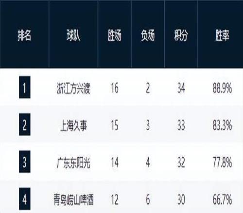 广厦领跑,广东第3,山东崛起逼近前4,辽宁跌至第12,2黑马很稳